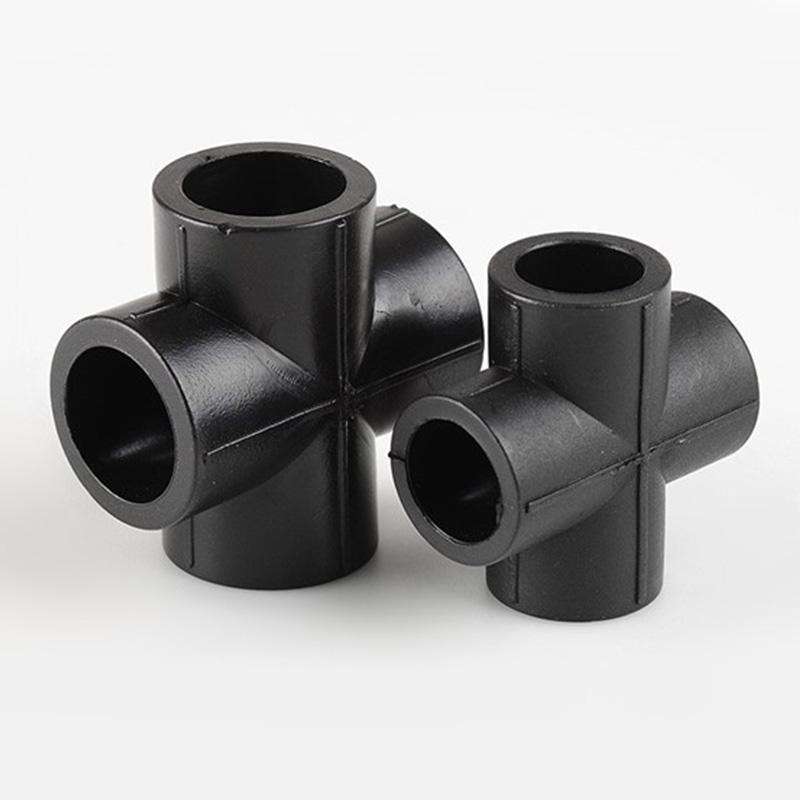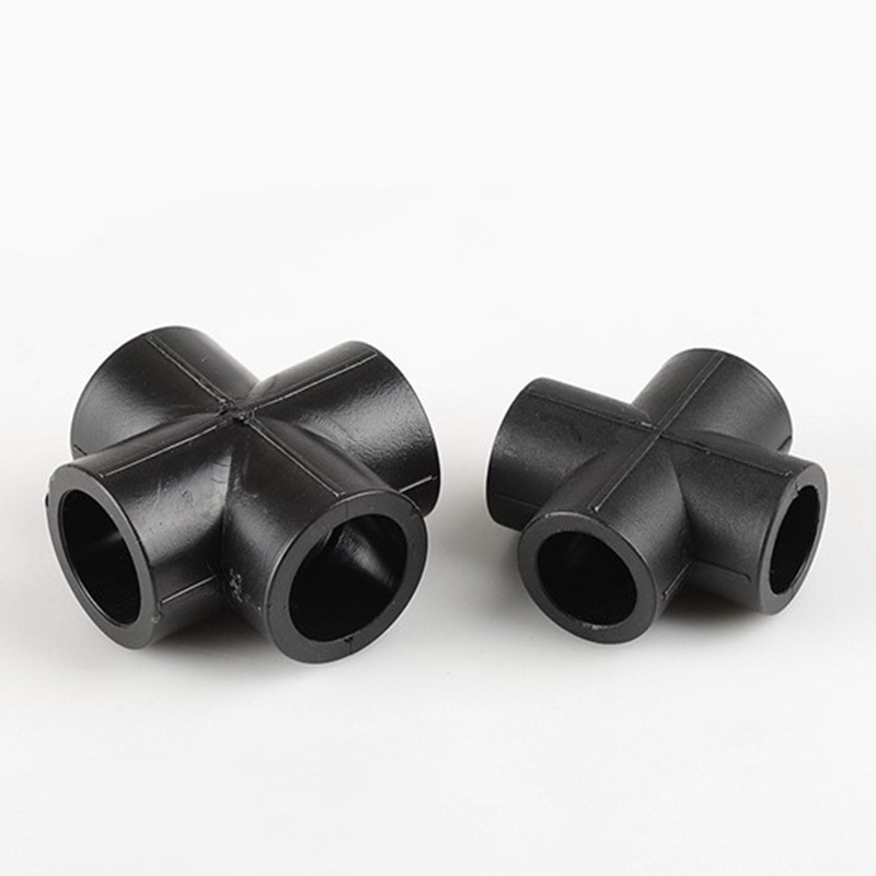 HDPE-rumpfusionen Lika diameter korsar fog med fyra lika diameter rör i 90 ° vinklar i en "+" -konfiguration. Det säkerställer balanserat flöde samtidigt som en jämn diameter håller en jameter och systemtrycket. Perfekt för vertikala rörledningar, det fördelar jämnt vätska eller gasflöde.