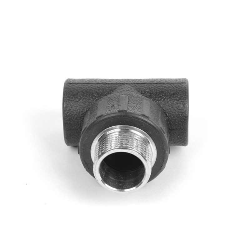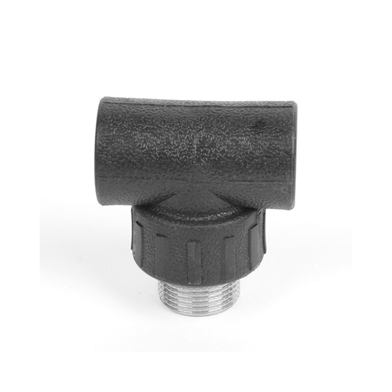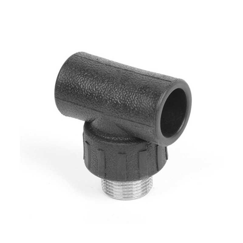 HDPE -extern tråd -tee för röranslutningsdelningar eller kombinerar flöde i rörsystem. Det ger också en manlig gängad port för anslutning till metall- eller plastdelar. En gren har manliga trådar; De andra två ansluter till HDPE -röret med komprimering eller fusion. Det skapar rörgrenar, håller sensorer eller lägger till ventiler. Konstruktionen bildar en pålitlig tätning utan smälta leder.