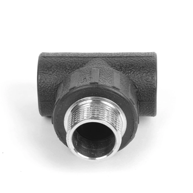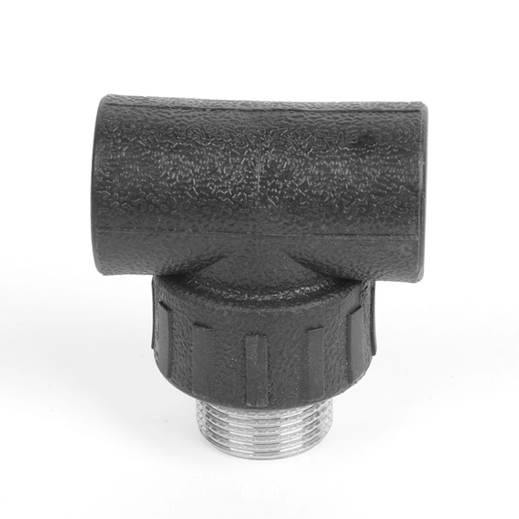 HDPE -gängade tee -delningar eller kombinerar flöde i rörsystem. Det ger också en manlig gängad port för anslutning till metall- eller plastdelar. En gren har manliga trådar; De andra två ansluter till HDPE-gängad T-shirt för hybridanslutning med komprimering eller fusion. Det skapar rörgrenar, håller sensorer eller lägger till ventiler. Konstruktionen bildar en pålitlig tätning utan smälta leder.