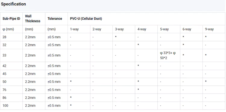 East Booms PVC-U-nätrör för underjordisk kabelskydd En stark flerkanalsstruktur som ger effektiv kabelhantering, de stöder samtidig multi-kabelagning med utrymme reserverat för framtida expansion. Med enastående korrosionsbeständighet, elektrisk isolering och flamskydd är de idealiska för underjordiska telekom- och krafttekniska projekt. Våra fyrkantiga PVC -rör används allmänt i bredbands-, fiberoptiska och kraftkabelapplikationer.